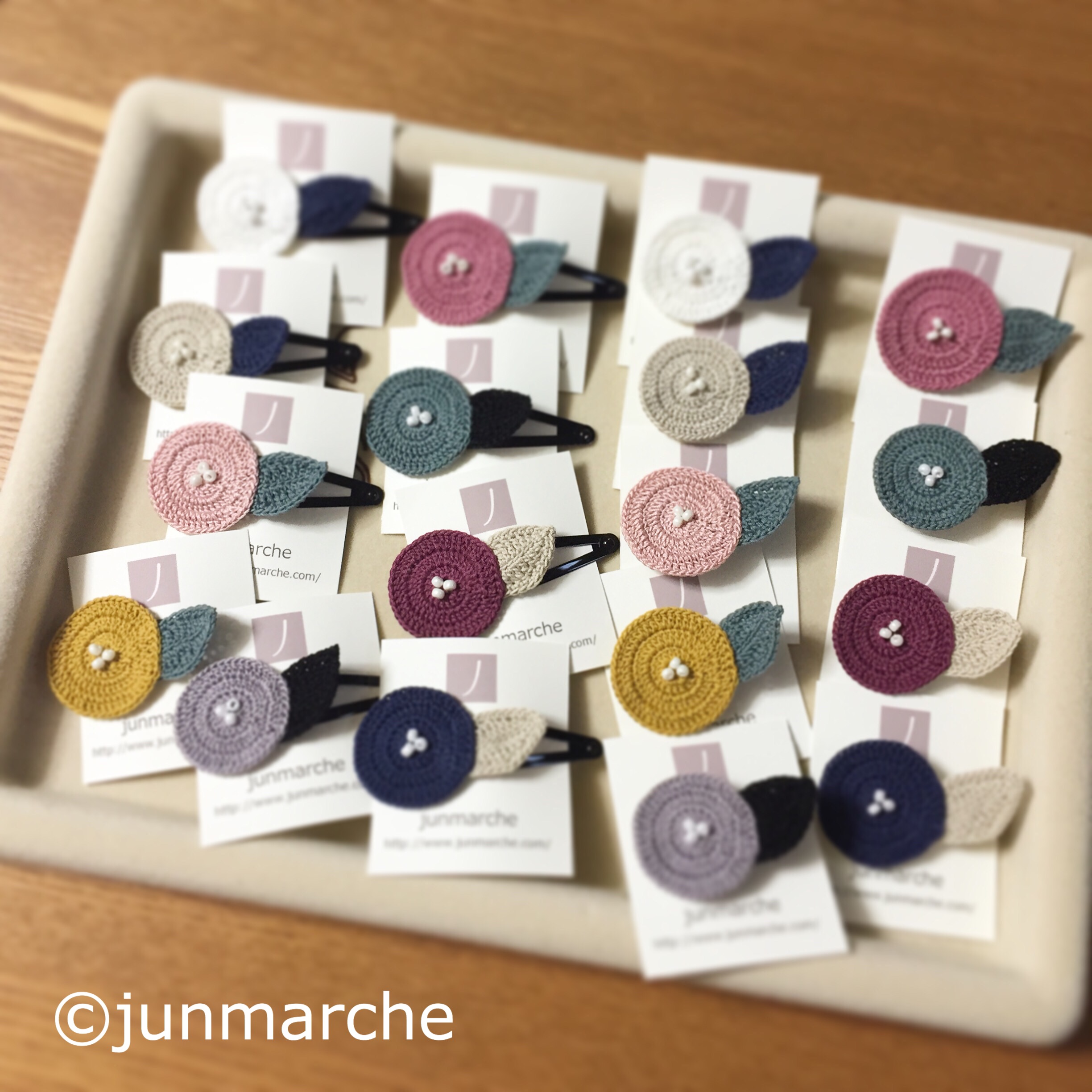 お花のブローチとヘアピン(パッチンどめ)、各9色をまずは置いていただく予定です。