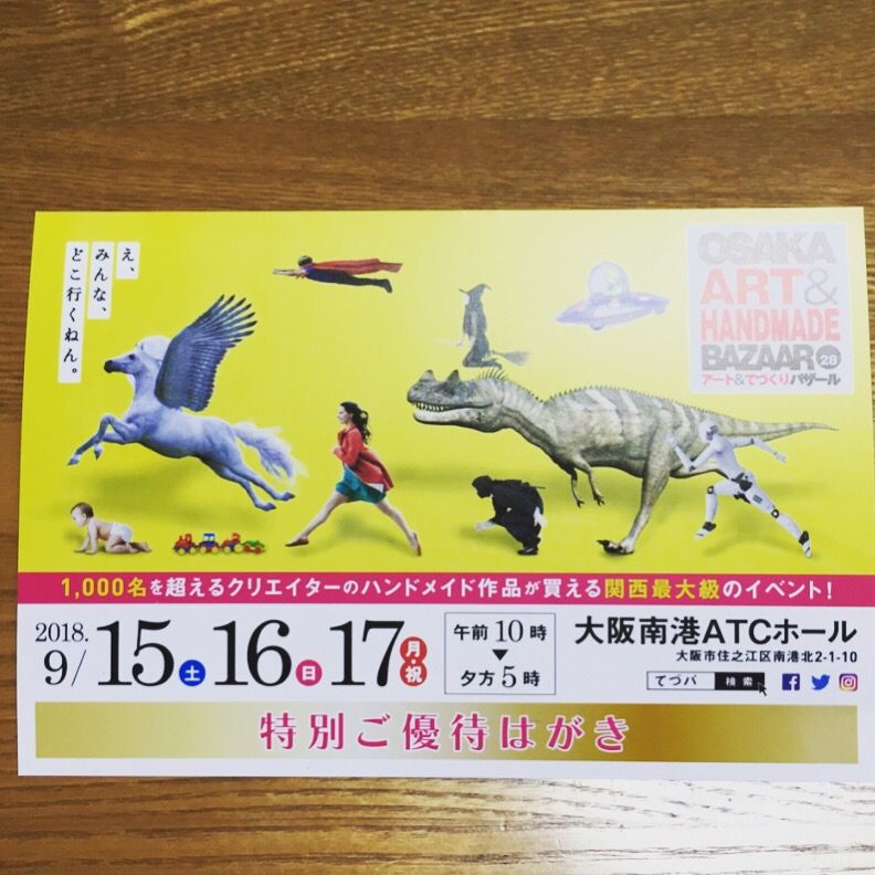 9/15(土)は大阪アート&てづくりバザールに出展します。